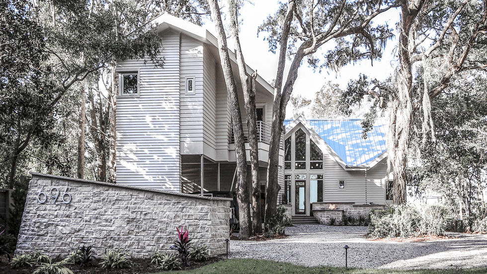 The Bay House sits along the banks of Choctawhatchee Bay, replacing a storm-worn structure with a permanent home designed for resilience, comfort, and connection to its coastal setting. Anchored by a grove of century-old Southern Live Oaks, the house engages its environment directly, framing long views of the bay and welcoming filtered light beneath the canopy of trees.